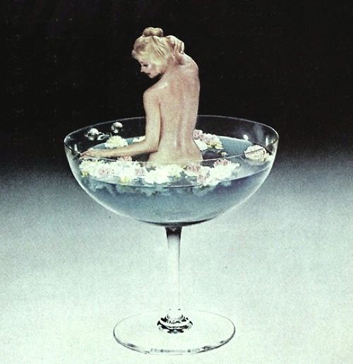 Dès les années 20, de nombreuses marques de spiritueux utilisent cette image pour associer la consommation du produit avec cette notion de plaisir et de sensualité. Au milieu de l'absinthe ou du Martini, c'est le Champagne qui devient le plus populaire, et pour cause - la légende veut que la coupe de Champagne ait été moulée sur un sein (Madame de Pompadour, Diane de Poitiers et Marie-Antoinette se le disputent toujours).